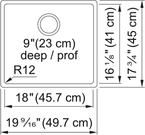 - 17 3/4″ x 19 9/16″ x 9″ deep