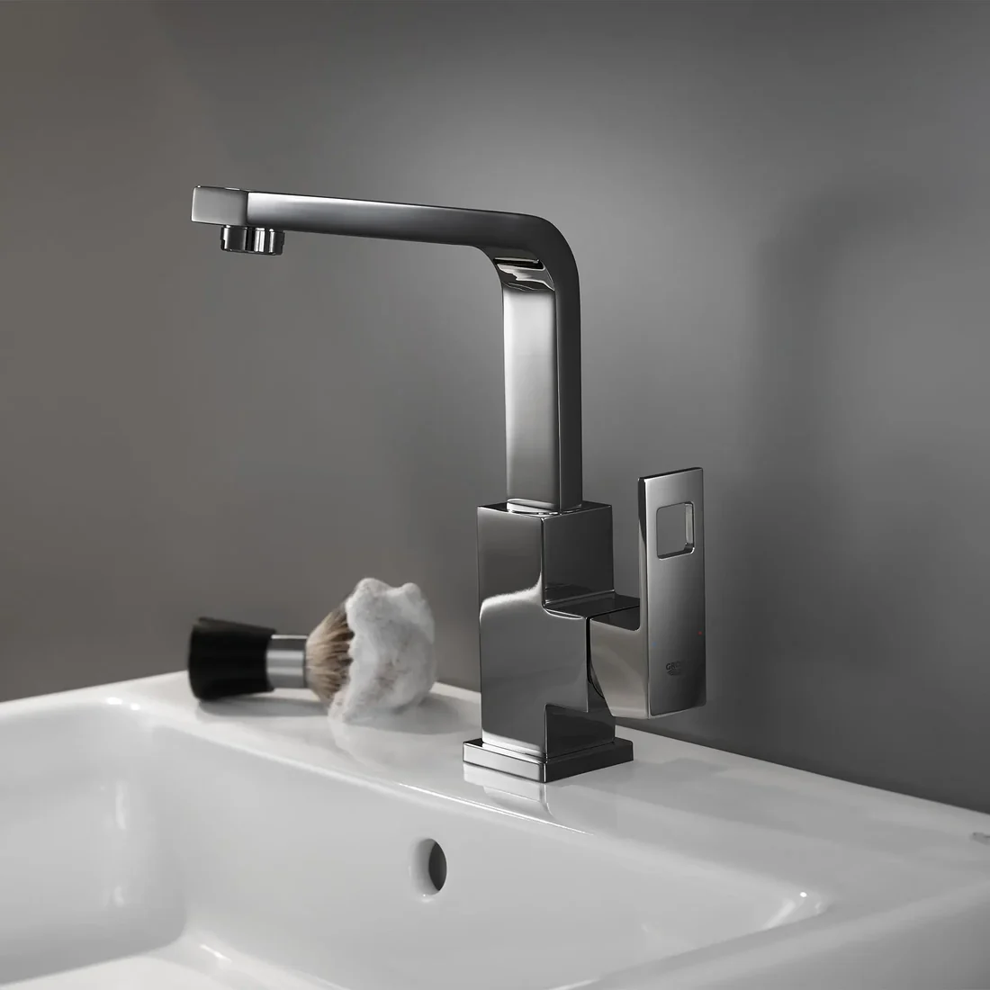 The Eurocube Single-Handle Bathroom Faucet from GROHE is defined by the precise angles that make modern design so appealing. Engineered for lasting beauty and functional excellence, the Eurocube faucet features renowned GROHE technologies that result in ultra-smooth handle motion, durable, long-lasting finishes, and an eco-friendly ethos for water conservation.