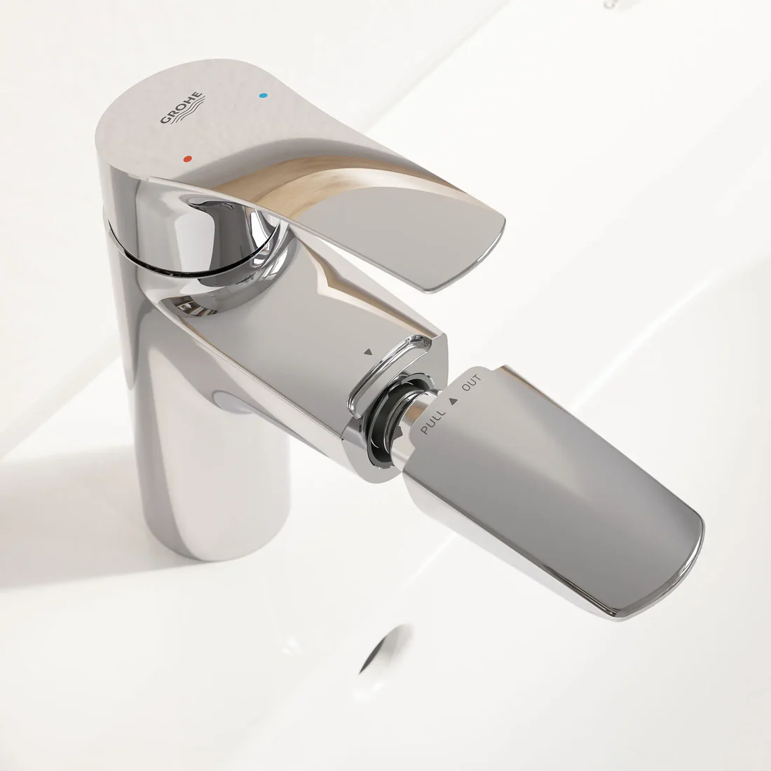 The Eurosmart Single-Handle Pull-Out Bathroom Faucet from Grohe has a unique, contemporary design engineered to the exacting standards you expect from Grohe. This versatile faucet features a pull-out spout that extends to reach every corner of the sink for easy cleaning. Comfortable to use, the Eurosmart faucet has strong cylindrical lines complemented by a gently curved, ergonomic lever handle, and an angled aerator resulting in an innovative outward water flow. Exclusive Grohe features, including water-saving Grohe EcoJoy, make the Eurosmart faucet an essential addition to today’s home.