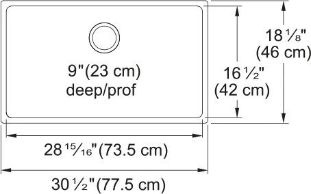 - 18 1/8″ x 30 1/2″ x 9″deep