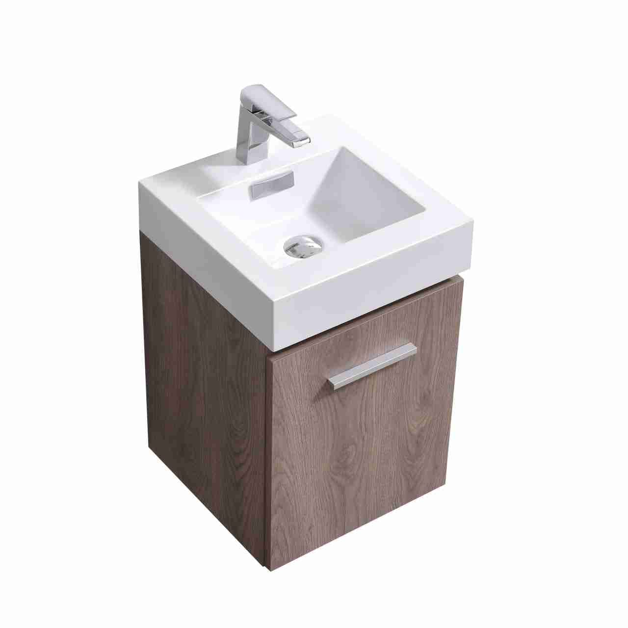 KUBEBATH BLISS 16″ GRAY OAK WALL MOUNT MODERN BATHROOM VANITY