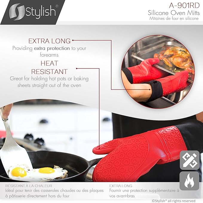 STYLISH A-901RD Heat Resistant Silicone Oven Gloves