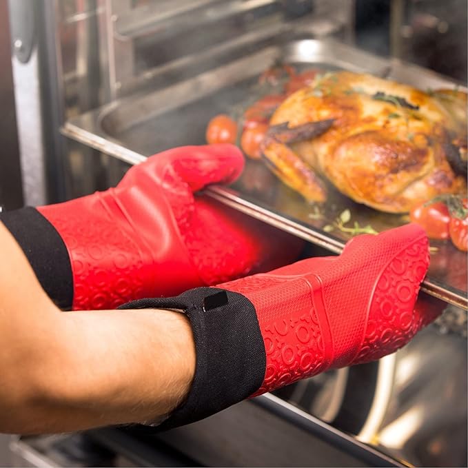 Transform your cooking routine with the STYLISH A-901RD Heat Resistant Silicone Oven Gloves today!