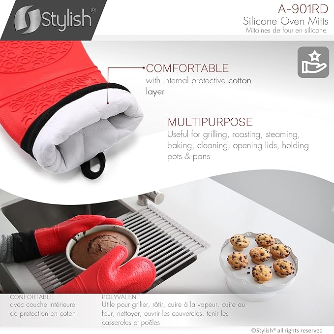 Introducing the STYLISH A-901RD Heat Resistant, designed for both luxury and functionality. Elevate your cooking experience while keeping your hands safe from burns and injuries.