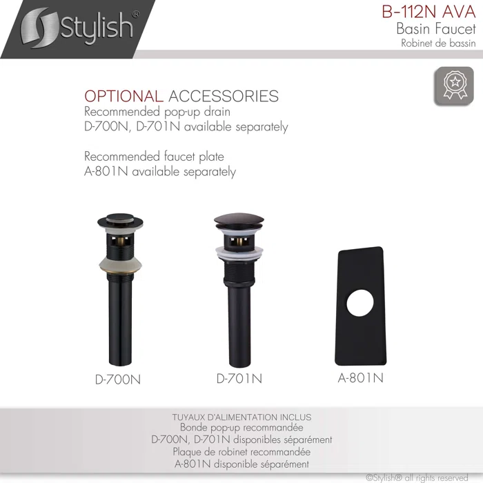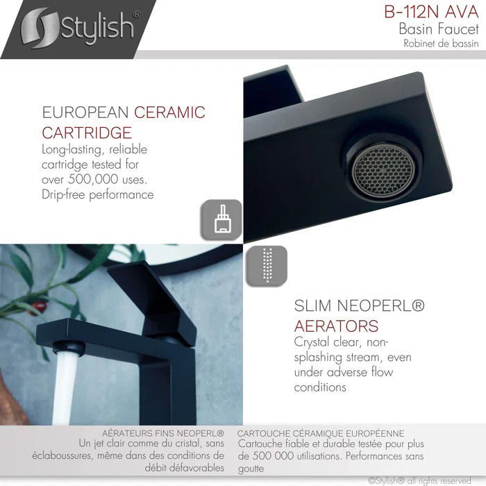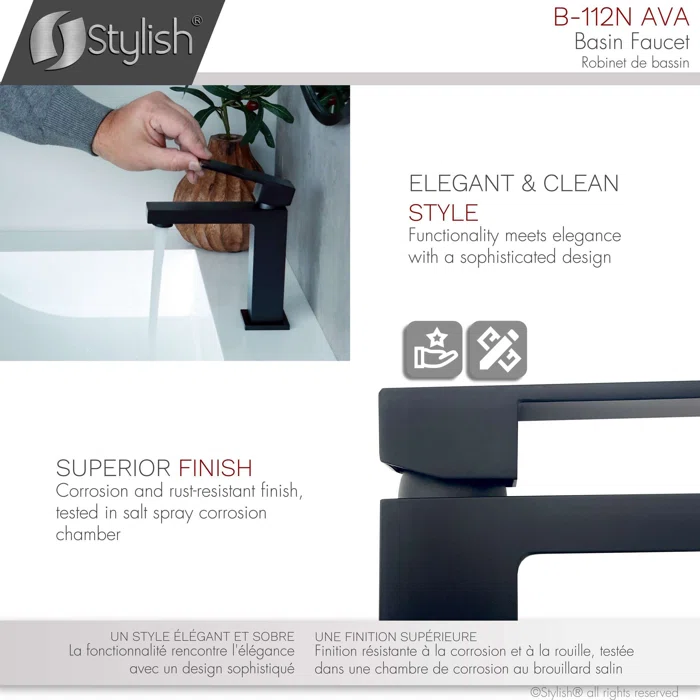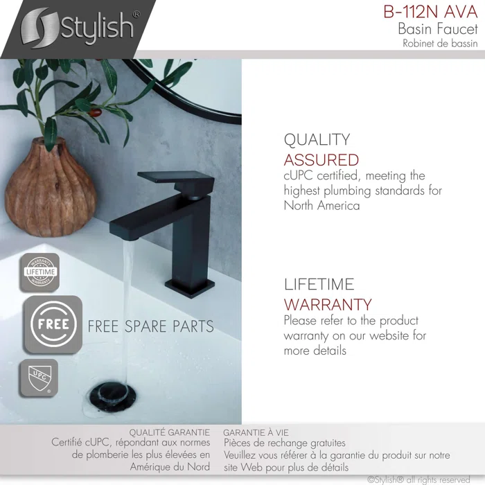 Introducing the STYLISH B-112N Bathroom Faucet—a stunning addition designed by the renowned Canadian company Stylish® International. With over 10 years of experience, Stylish® is dedicated to delivering outstanding service while meeting the highest plumbing standards in North America.
