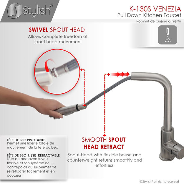 STYLISH K130SS01S MODENA Pull Down Kitchen Faucet & Soap Dispenser