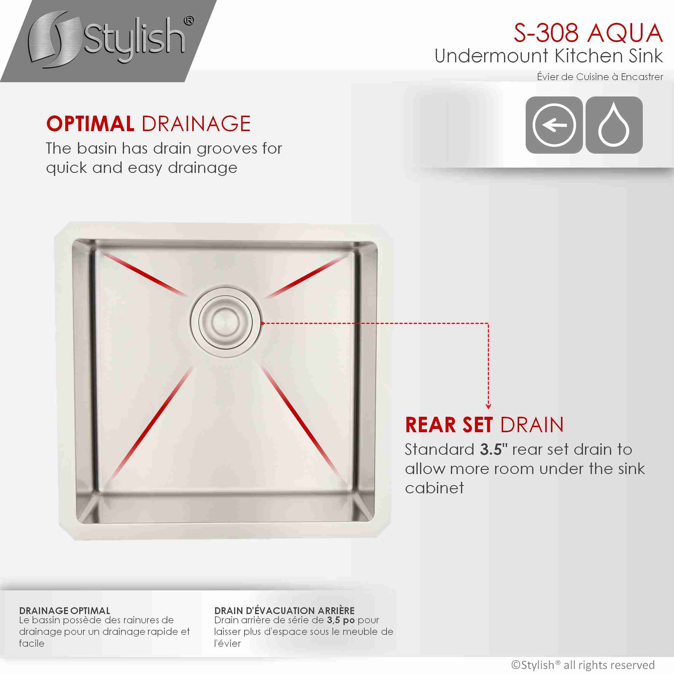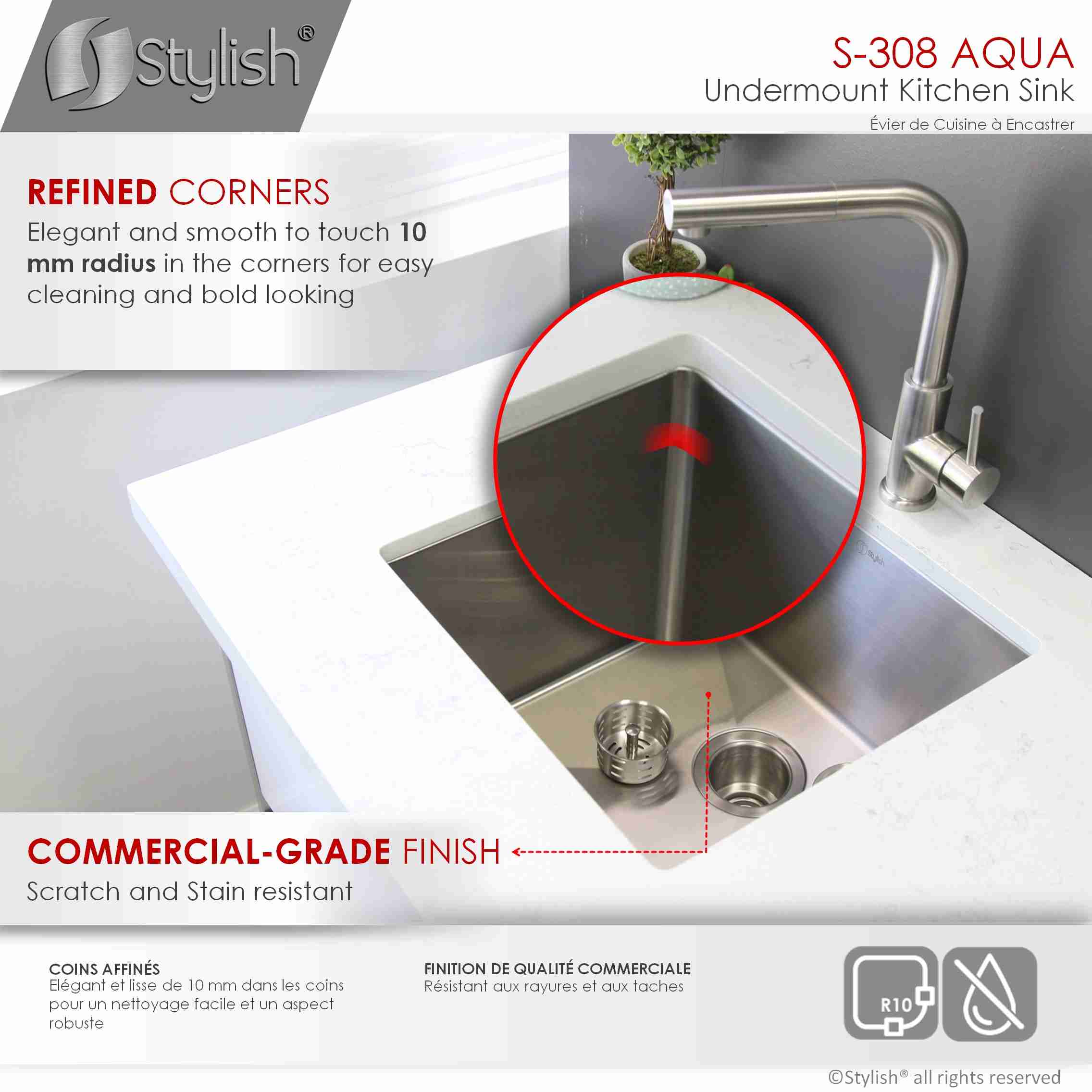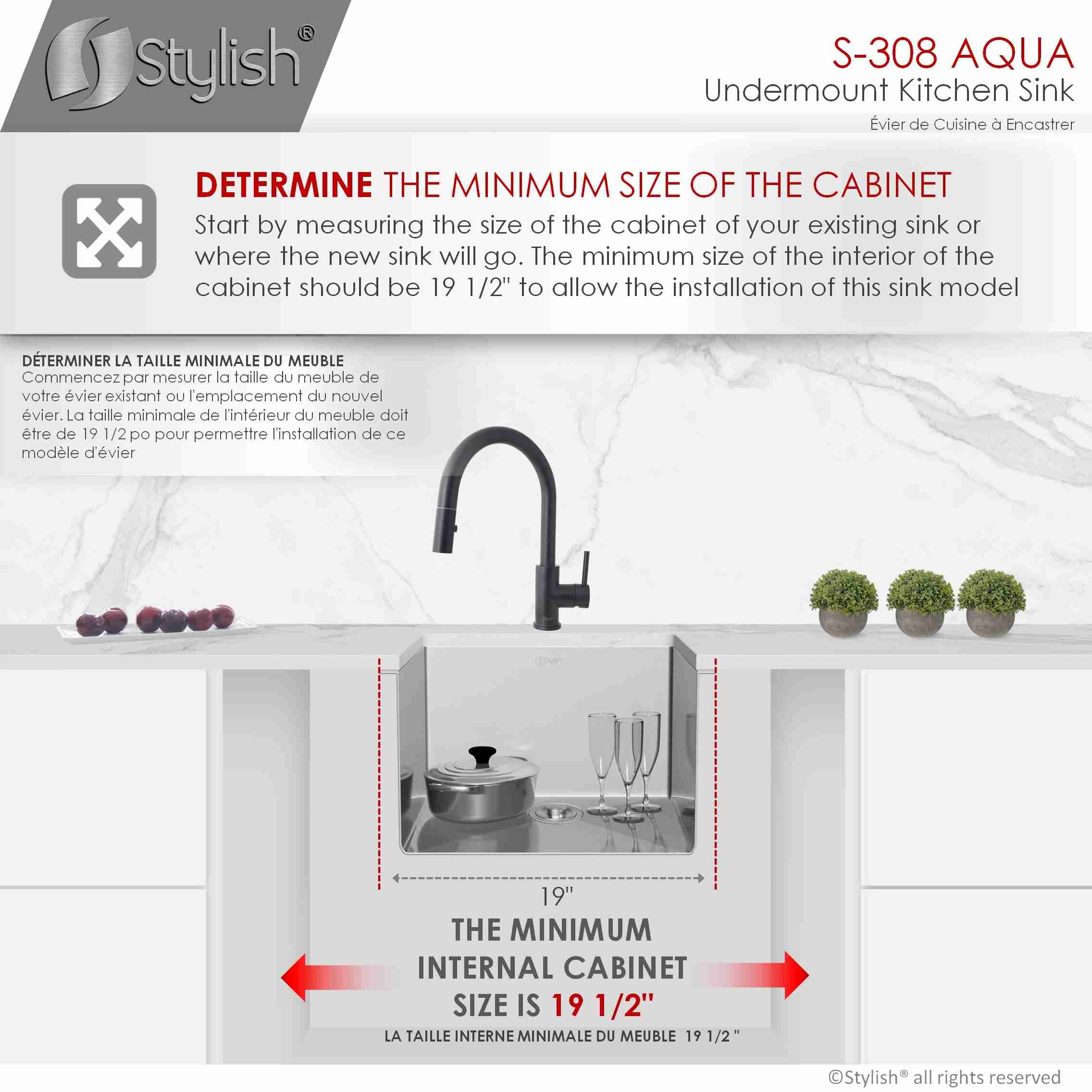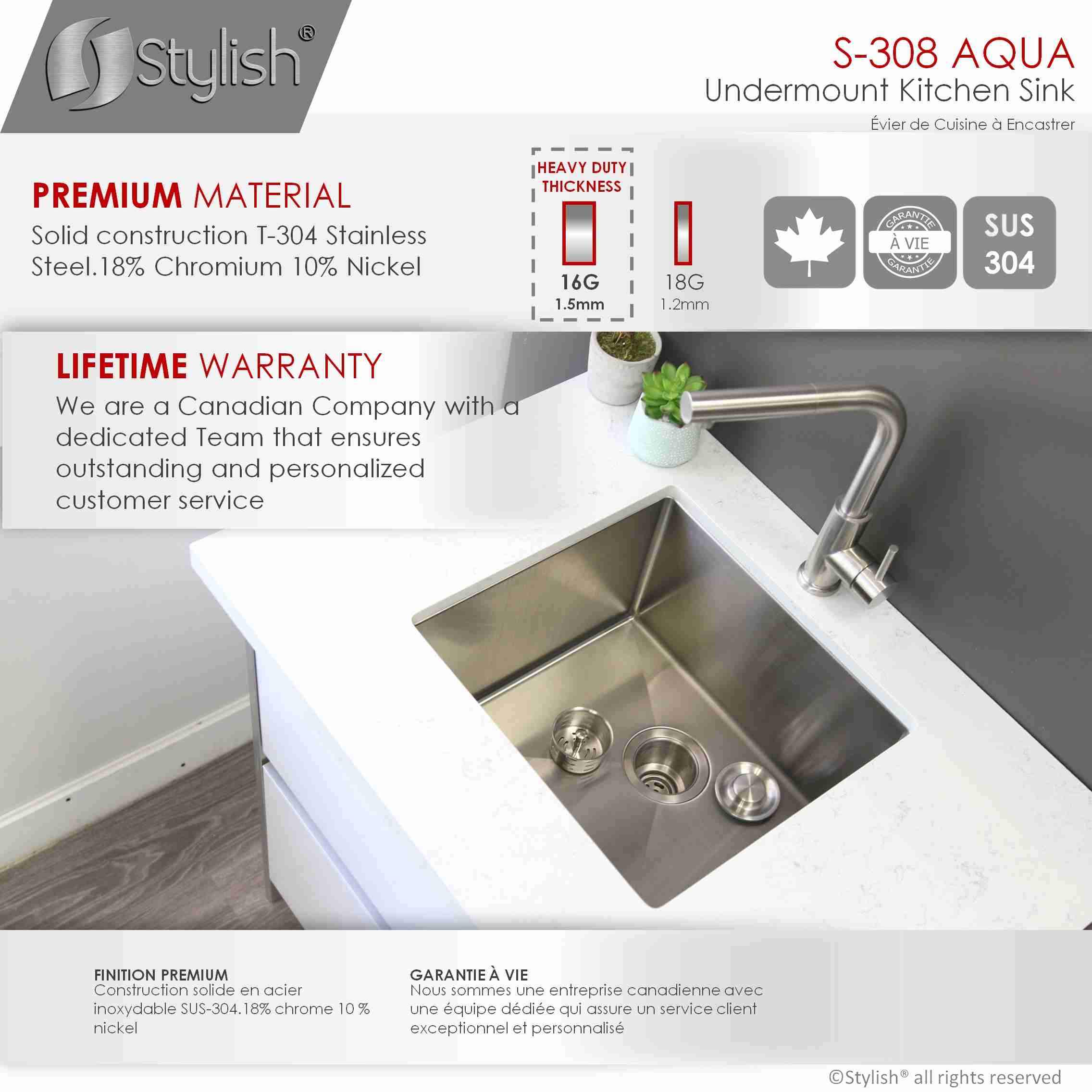 STYLISH S-308XG AQUA 19-inch Undermount Kitchen Sink Documents: